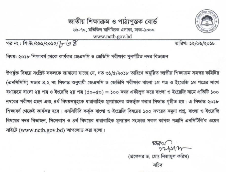জেএসসি পরীক্ষার মান বন্টন ও নমুনা প্রশ্ন